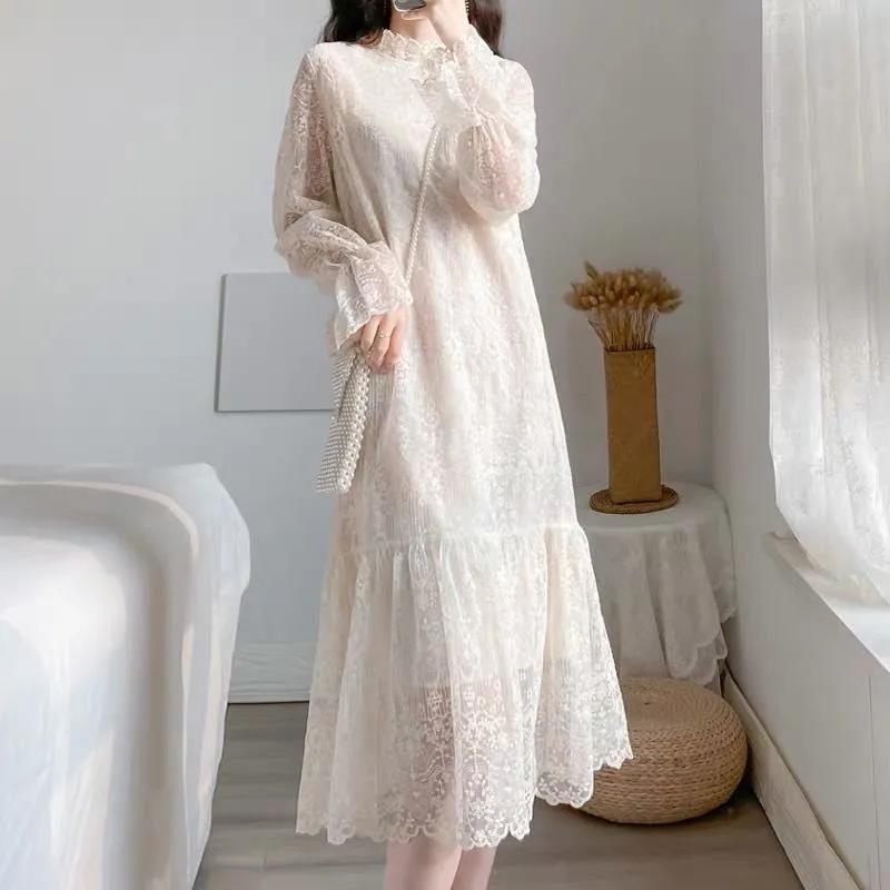 Introducing the elegant and enchanting dress for the 2025 Autumn/Winter season. This exquisite piece features a luxurious fleece-lined interior for added warmth and comfort, while the long sleeves offer graceful sophistication. Designed in a mid-length, the dress embodies a fairy-like style that exudes elegance. Crafted from delicate mesh material, its intricate lace design ensures you make a stunning statement at any event. Perfect for those seeking a blend of warmth, style, and a touch of magic.