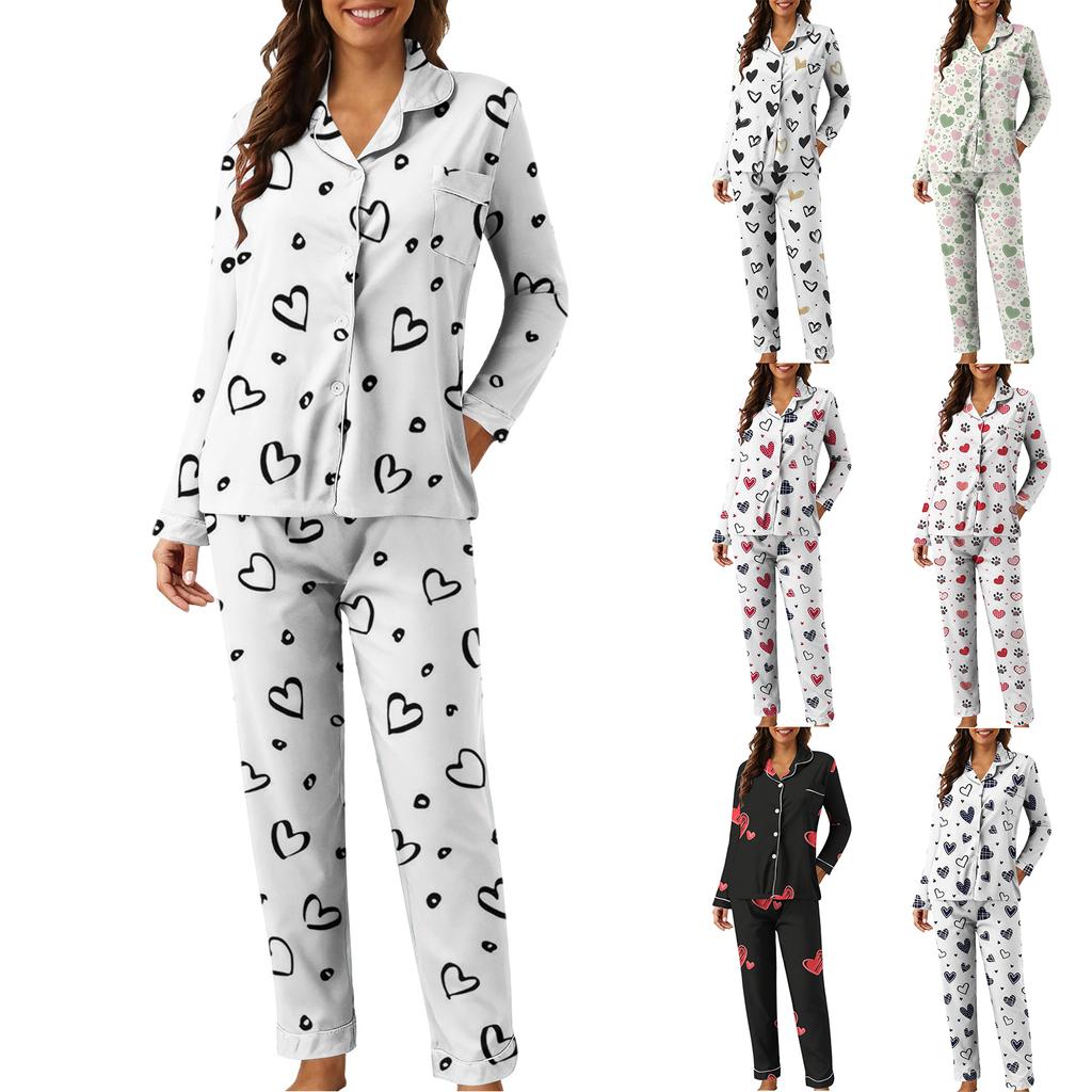 Women's Casual Fashion Heart Print Long-Sleeved Top And Trousers Homewear Set