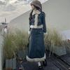 This two-piece set offers a unique blend of retro style and Korean drama-inspired fashion. The set includes a fluffy coat and a long skirt, both crafted from high-quality denim material. The coat features a distinctive denim fur and showcases a sporty flair, making it an ideal choice for those who appreciate contemporary and nostalgic styles. The long skirt complements the coat to create a cohesive look that is both comfortable and fashionable, perfect for making a statement in any setting.