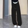 Experience ultimate comfort and style with these wide-leg sweatpants, designed in the trendy Hong Kong style. Made from soft, high-quality cotton, they feature a high waistline with a convenient drawstring for a perfect fit. The pants are enhanced with unique patchwork and quilted decorations, adding a fashionable touch to your casual wardrobe. Perfect for lounging or running errands in effortless style.