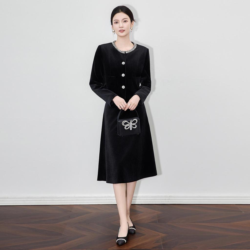 Elevate your wardrobe with this elegant jacket and skirt set, crafted from luxurious velvet for a touch of sophistication. Featuring a solid pattern with eye-catching print decoration, this set effortlessly blends classic aesthetics with a modern twist. The jacket's sportive style provides versatility and flair, while the swing midi skirt offers graceful movement and charm. Whether for a chic evening out or a stylish daytime event, this set ensures you always step out in confidence and elegance.