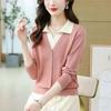 2025 Autumn/Winter Korean Style Sweater: Women's Lapel Fake Two-Piece Top