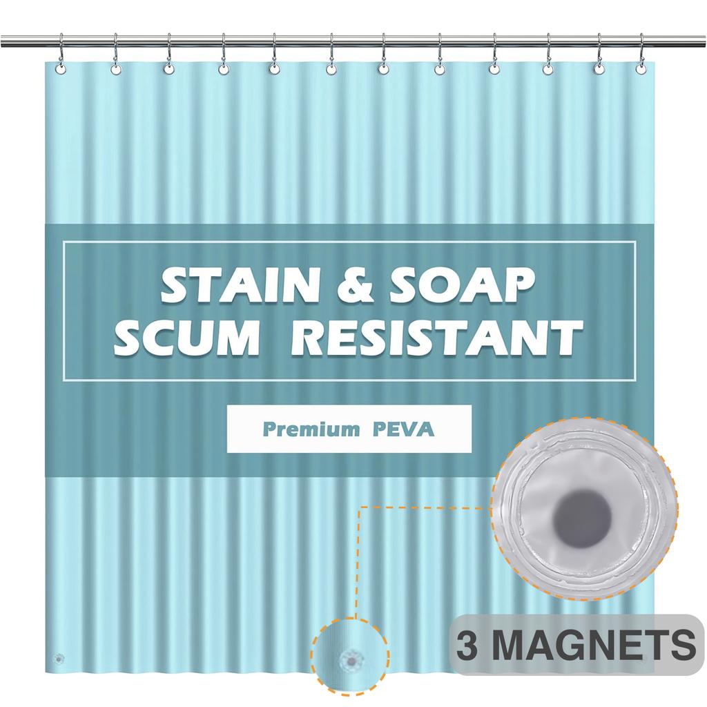 1Pc Light Blue Shower Curtain Liner With Magnets, Plastic Bath Curtain For Bathtub Bathroom, Window Curtain, Home Decor