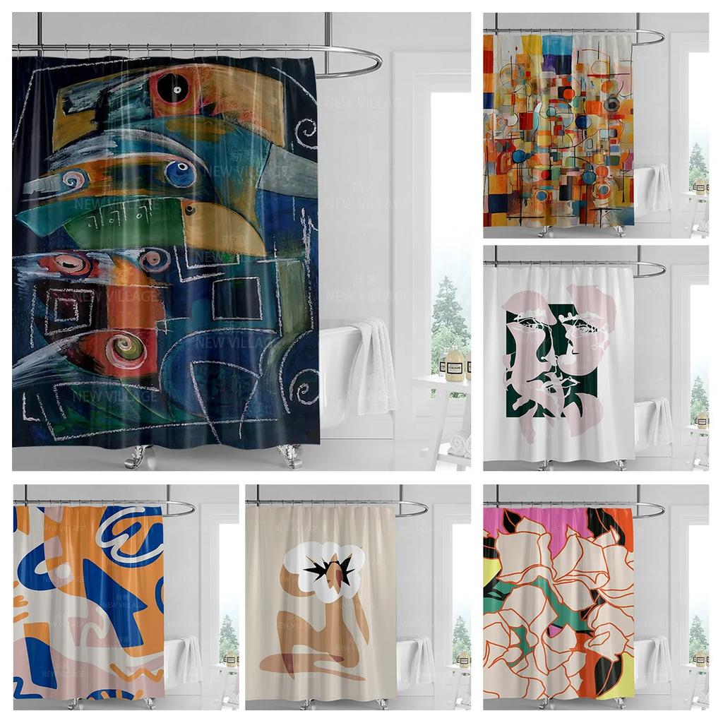 Abstract Art Print Waterproof Shower Curtain - Stylish, Durable & Easy-Care Choice For Contemporary Bathroom Décor