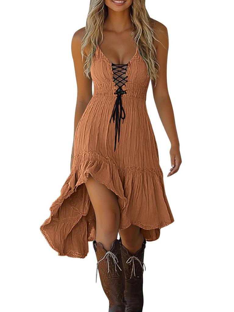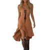 European & American Retro Gothic Women's Halloween Dress with Lace Trim and Drawstring