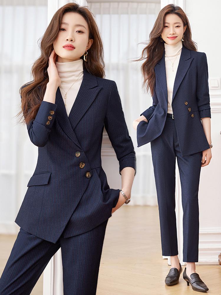 Elevate your professional wardrobe with this elegant Women's Striped Suit Set, designed for both spring and autumn wear. Crafted entirely from high-quality polyester, this suit set offers a sleek and comfortable fit ideal for formal occasions. The timeless striped pattern adds a touch of sophistication, making it a versatile choice for the modern professional. Whether you're heading to the office or attending a business meeting, this suit set promises to keep you looking polished and confident.
