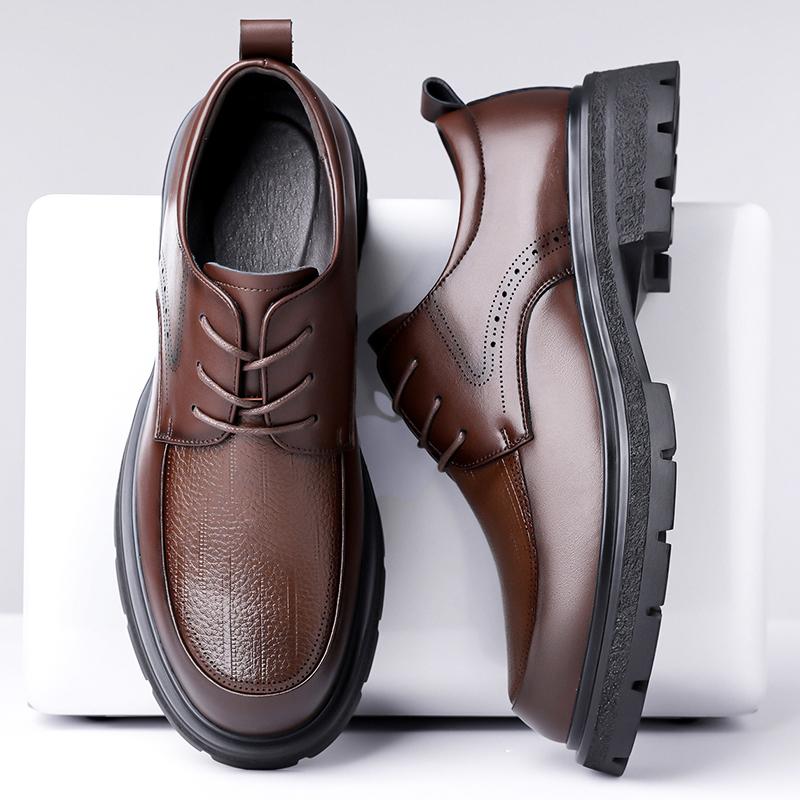 Lace Up Thick Soled Men's Leather Shoes Retro Gentleman Style Work and Party Luxury Adult Shoes Comfortable Derby Shoes New