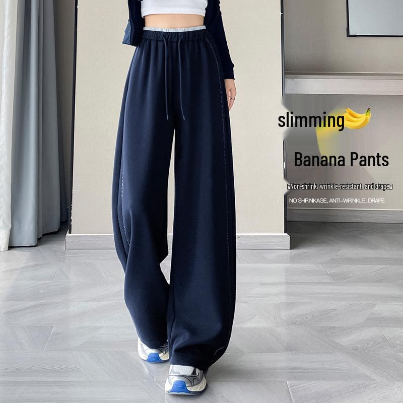 Embrace elegance with these Dark Blue High-Waisted Floor-Length Wide-Leg Trousers, meticulously designed for Autumn 2025. Crafted with viscose material, these trousers offer a slimming drape style that enhances your silhouette. The high waistline accentuates your figure while providing a comfortable, casual fit. Delicate lace decoration adds a touch of sophistication to these already stunning trousers, making them a versatile addition to your wardrobe. Perfect for both relaxed and refined settings, these trousers are a must-have for any fashion-forward individual.