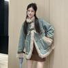 Retro Denim Thickened Jacket for Women, Autumn and Winter Korean Version, New Furry Design, Loose and Velvet Cotton Jacket for Small People