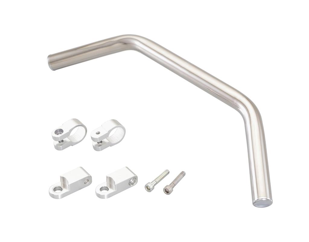 The bar is made of stainless steel with a polished finish, offering both shine and durability. The clamp is made of machined aluminum, balancing lightweight design with rigidity. This ensures high satisfaction in both appearance and functionality.