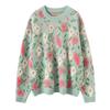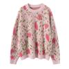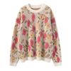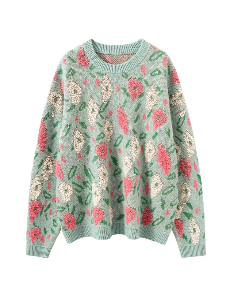 Cashmere Peach Blossom Jacquard Heavy Brushed Sweater, Round Neck, Loose Fit, Thick Wool.