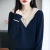 2025 Autumn Women's V-neck Knitted Sweater: Fashionable Two-piece Casual Pullover