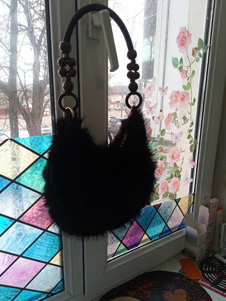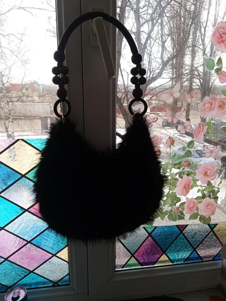 1pc Women's Faux Handbag - Plush Faux Tote & Crossbody Purse with Bead-Accented Strap, Golden-Tone Charm-Like Beads, Zipper Closure