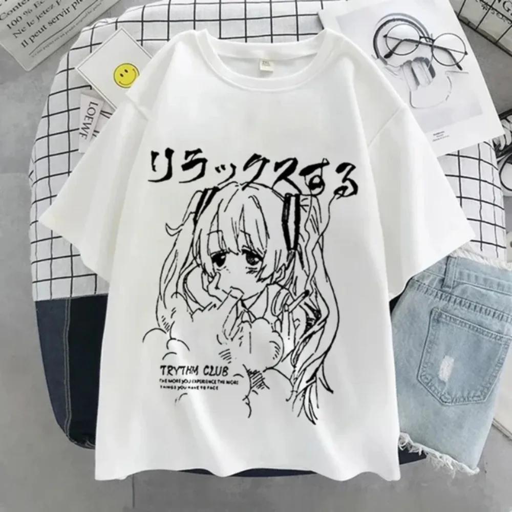 Womens Anime Y2k Oversized T-shirt Print Kawaii Clothing Japanese Graphic Streetwear T Shirt Harajuku Grunge Tops