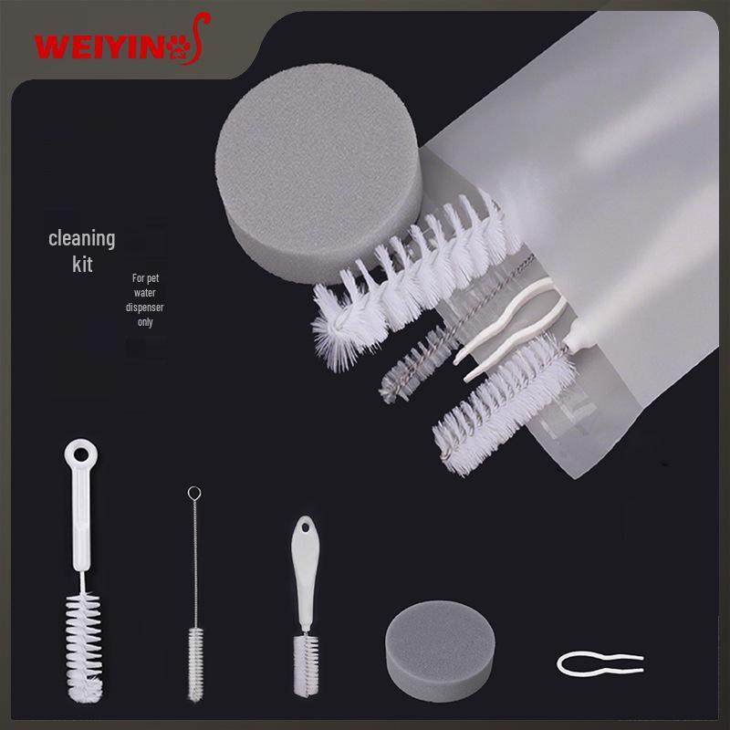 Cat Fountain Cleaning Brush Set: Soft & Coarse Bristles, Wipe Stain Removal, Water Pump Clip Brush.