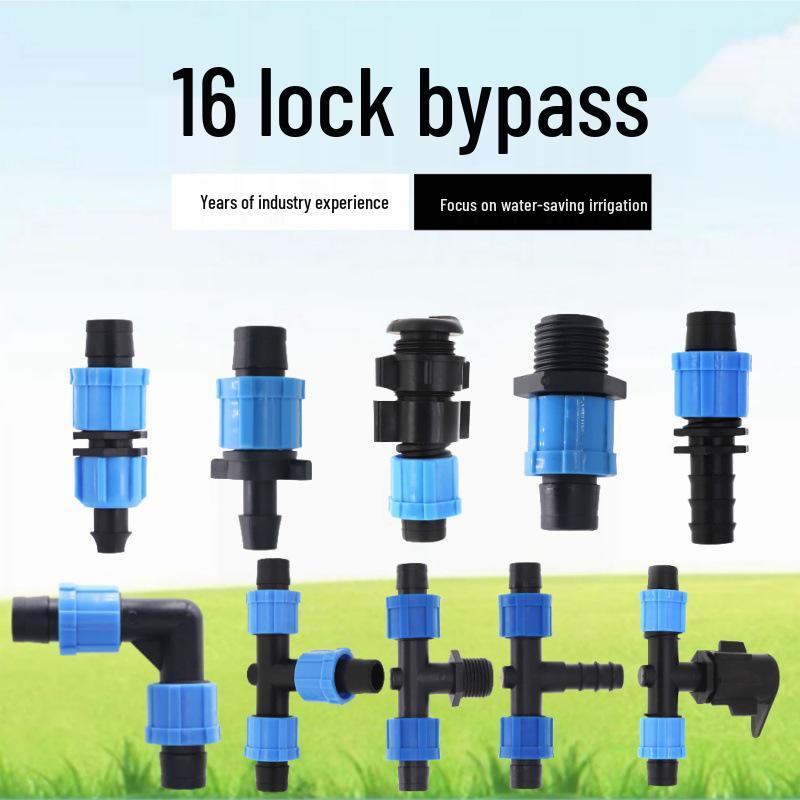 16mm Drip Tape Accessories Set: Tee Connector, Lock, Bypass, Male Thread for Garden, Greenhouse, Agriculture.
