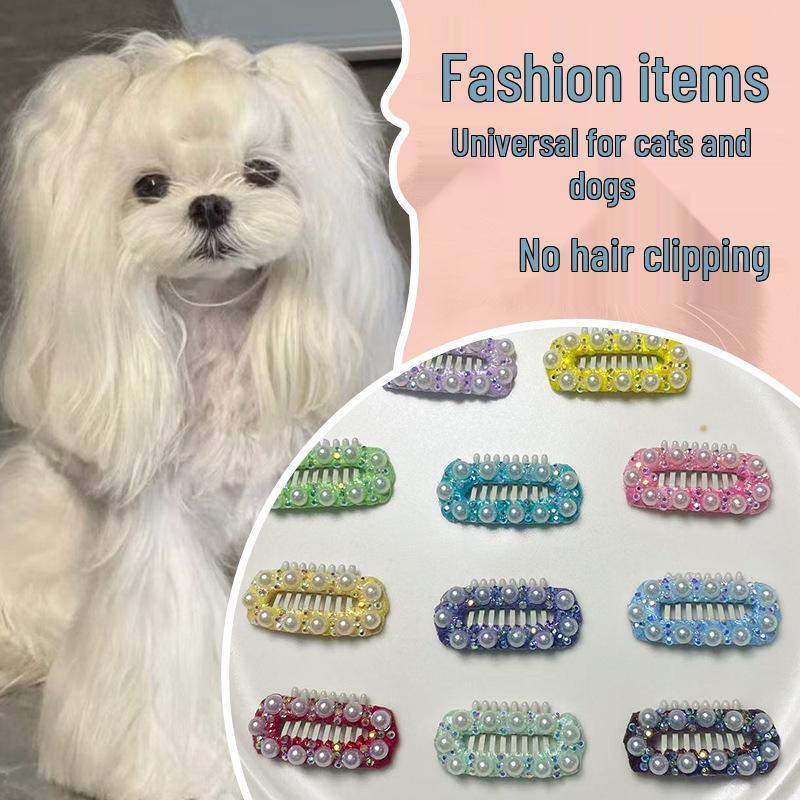 Handmade Pearl & Rhinestone Hair Clip for Yorkshire, Bichon, Maltese Dogs & Cats