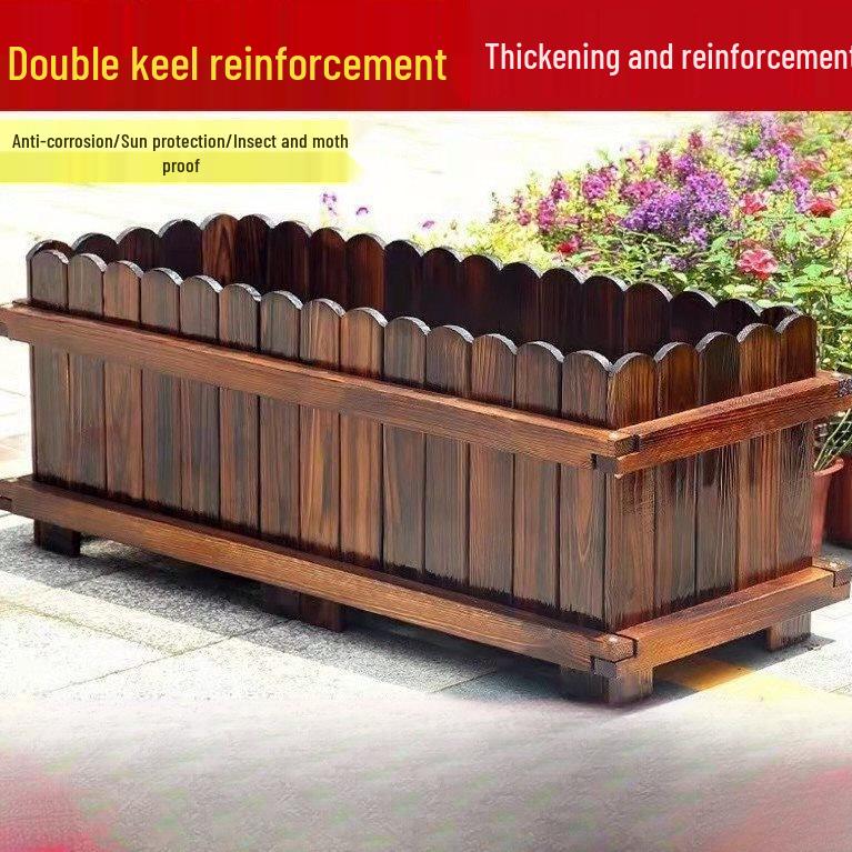 Large Outdoor Rectangular Planter Box - Solid Wood, Anti-Corrosion, Ideal for Flowers or Vegetables On Balcony or Courtyard