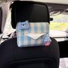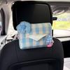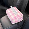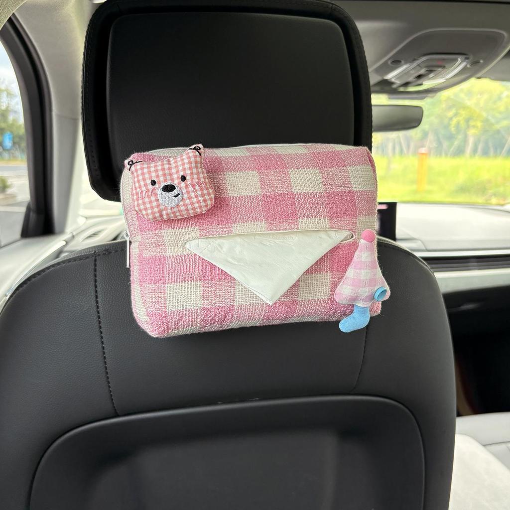 Cartoon Bear & Bunny Plaid Tissue Box for Car Seat Back, Armrest, or Sun Visor