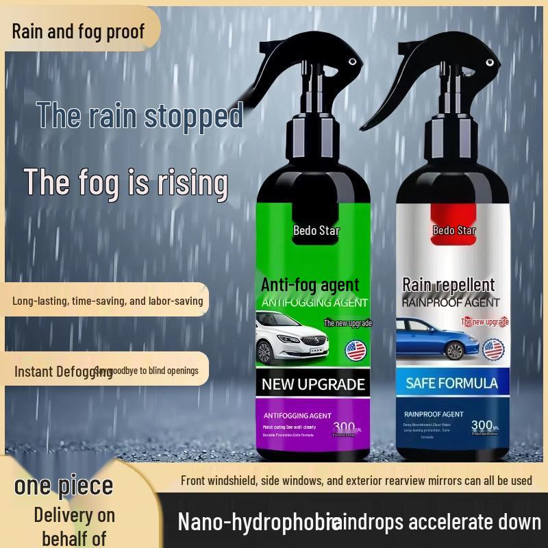 Car Rearview Mirror Anti-Fog & Rain-Repellent Glass Spray, Windshield Defogger Cleaner