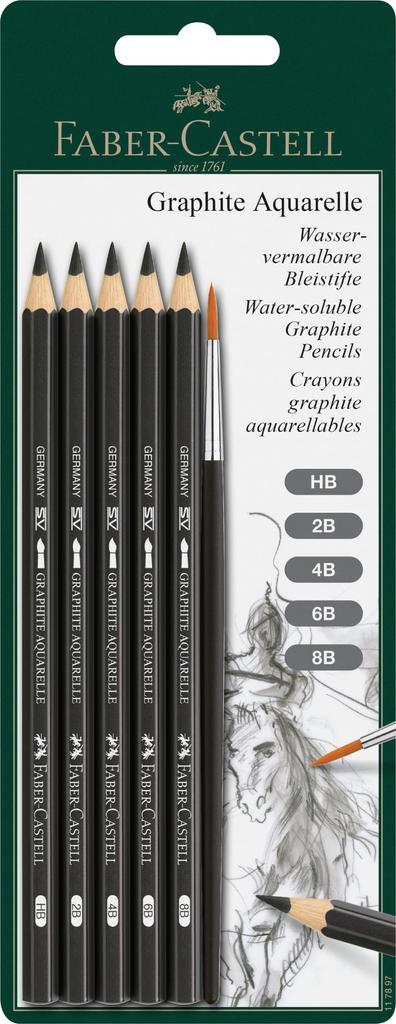 Faber-Castell Watercolor Graphite Pencils, 5 Hardnesses, Blister Set with Brush