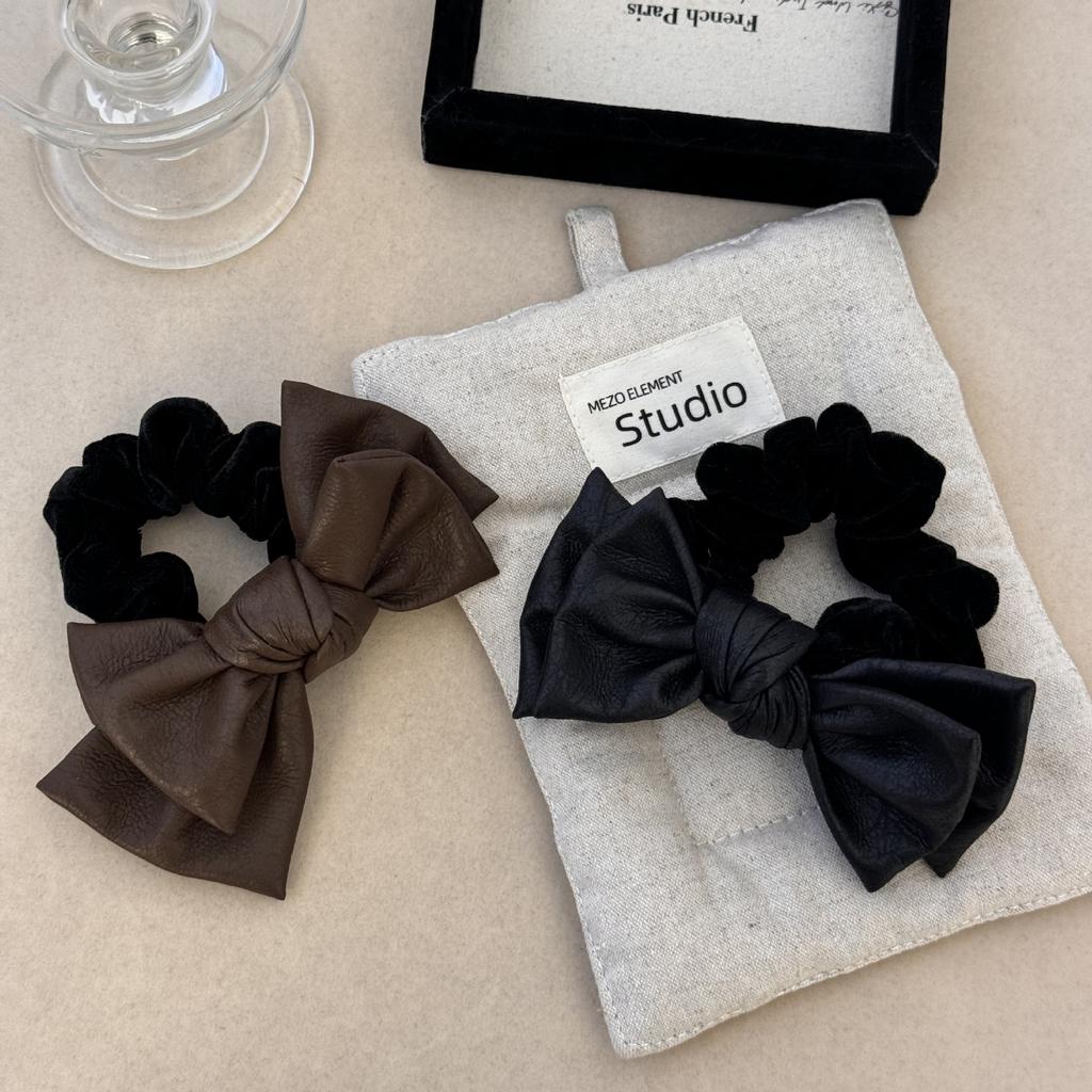 Double-layer Bow Hair Tie, High-end Style, Large Intestine Hair Band, Leather Cover, Leather Band, Women's Bun Hair Accessory