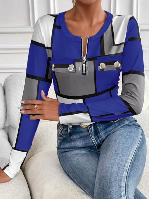 2025 Trendy Women's Plaid Round Neck Long-Sleeve T-Shirt