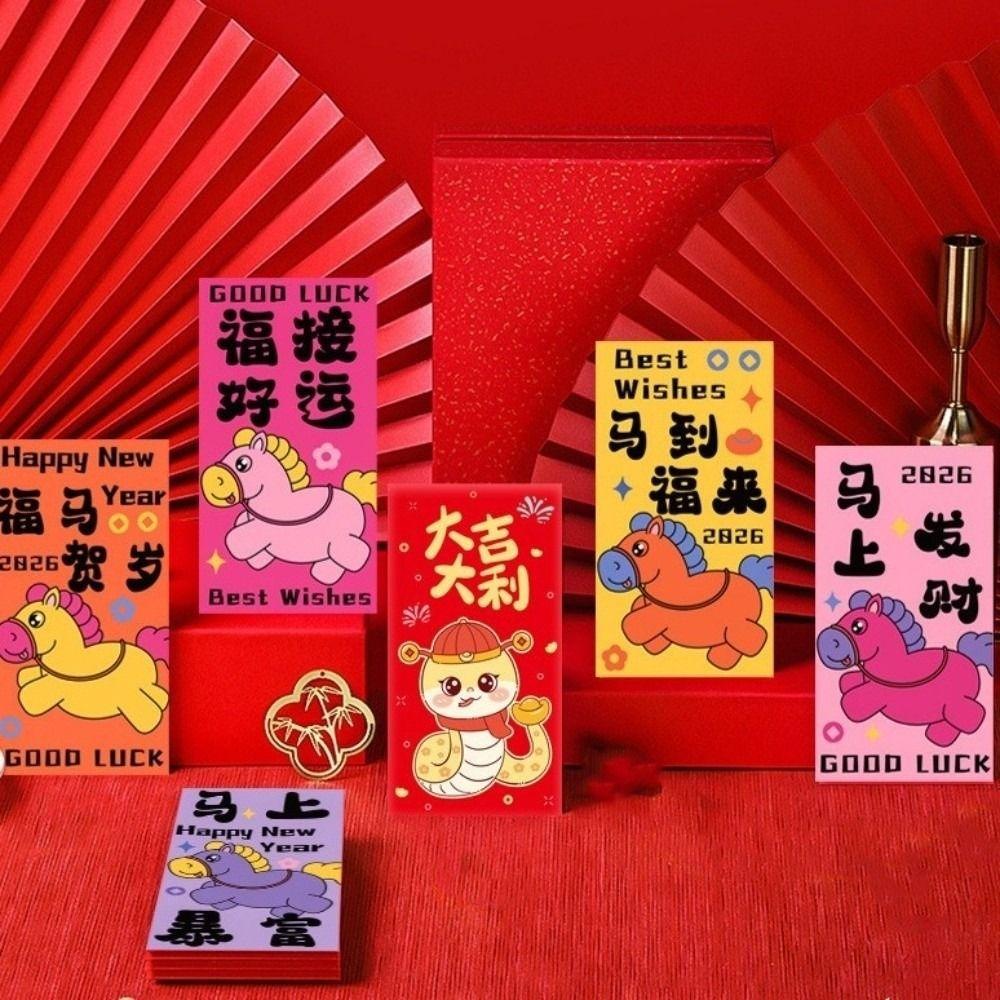 6pcs Best Wishes 2026 Horse Year Money Envelope Chinese Tradition Red Envelope New Year Celebration