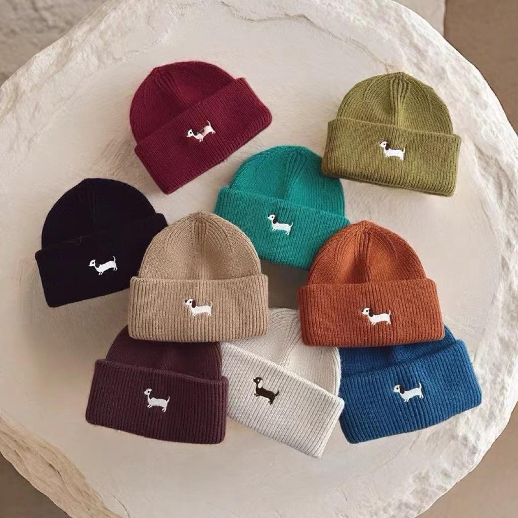 Children's Woolen Hats Korean Embroidered Dogs Cute Fashionable Casual and Warm Pullover Sweaters Knitted Hats for Boys and Girls