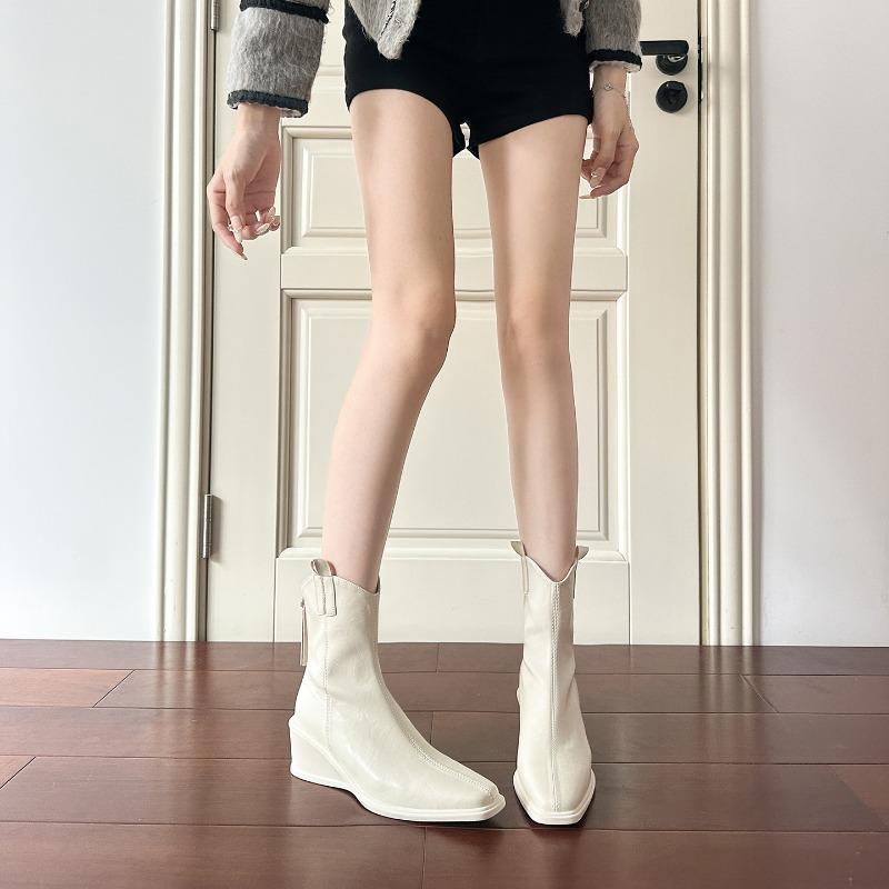 White Thick-soled Wedge Elastic Thin Boots Women's Autumn and Winter New Retro Versatile Short Boots Martin Boots