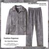 Men's Thickened Coral Fleece Pajamas - Warm Flannel Long Sleeve Set for Autumn & Winter