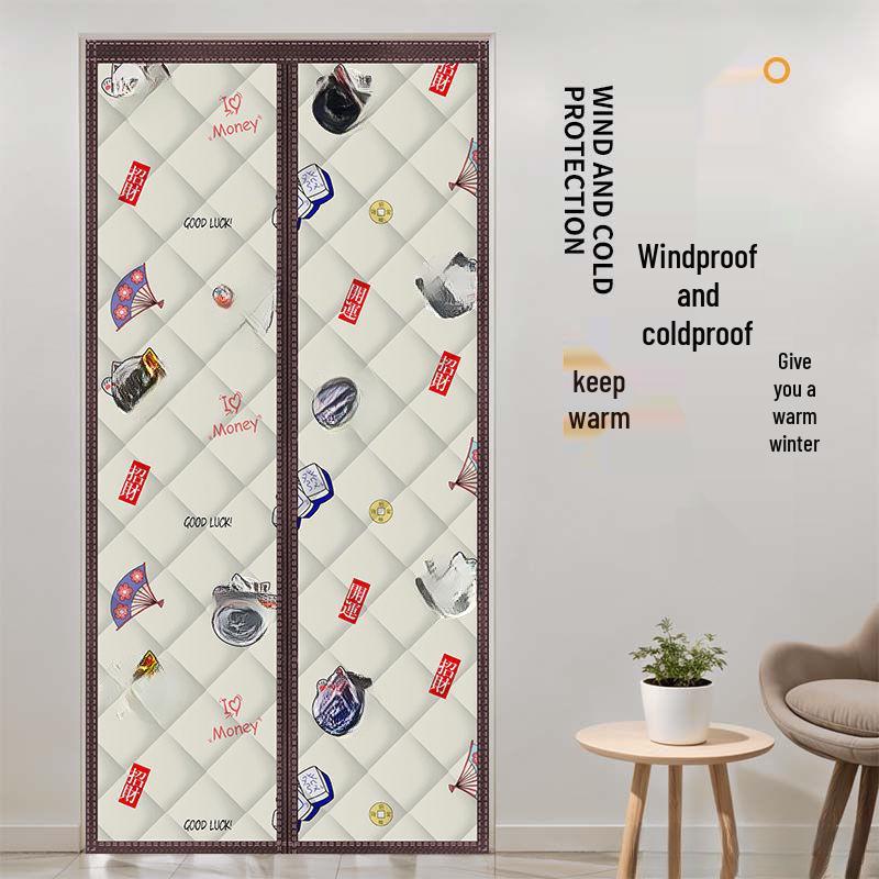 Winter Windproof & Soundproof Magnetic Double-Opening Door Curtain - Thickened, Cold-Proof, Self-Adhesive Cotton for Home