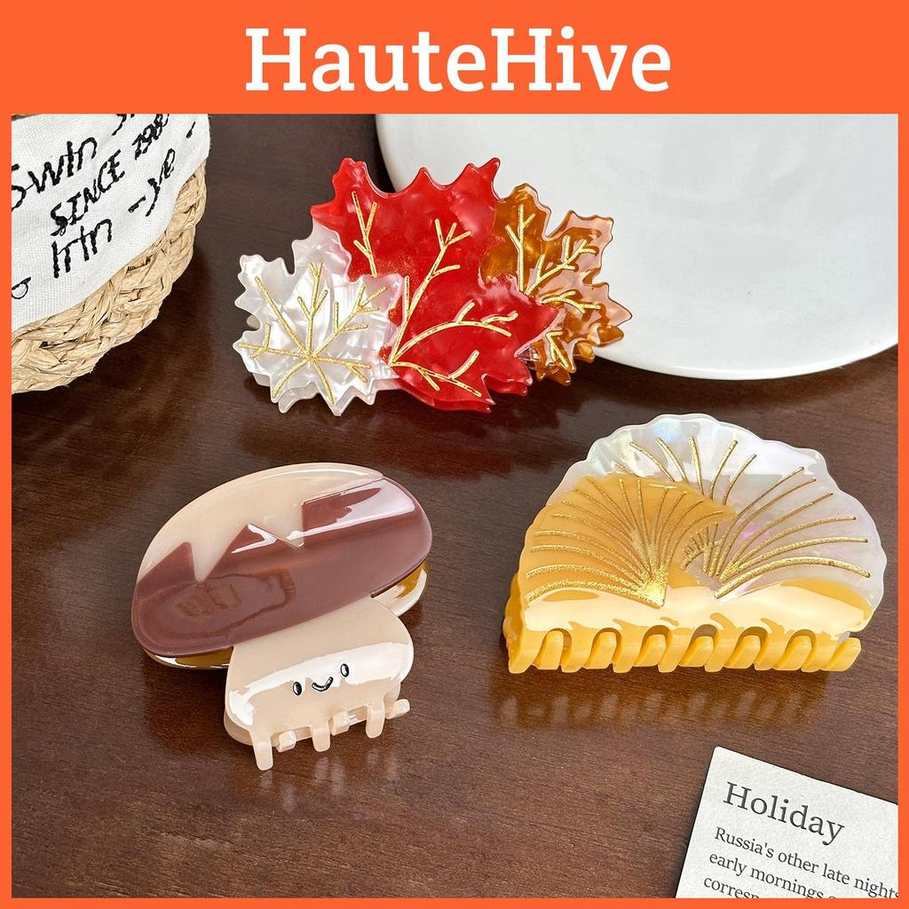 Unique Design: Featuring charming maple leaf and mushroom shapes, this hair clip adds a trendy touch to any outfit while celebrating the beauty of autumn.