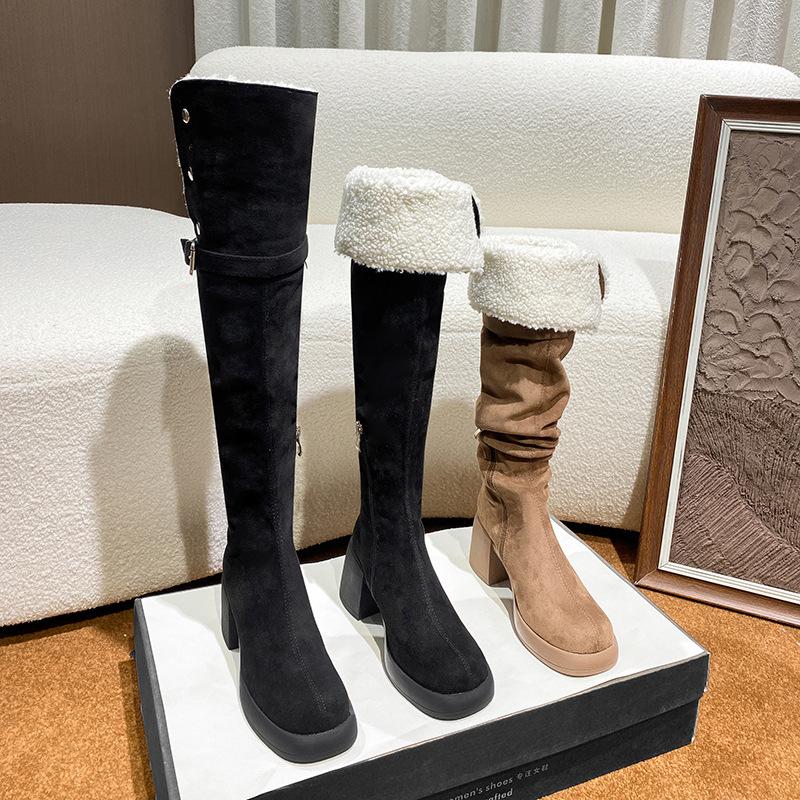 Over-knee Boots, Long Boots, Women's Boots, Winter New High Tube, Long Tube, Thick-soled Lamb Wool Elastic Thick Heel Stacked Boots