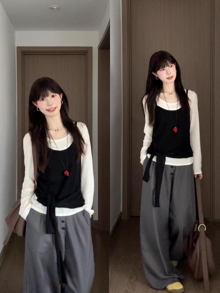 Korean-Style Layered Long-Sleeve Two-Piece Women's Slim Fit Autumn T-Shirt