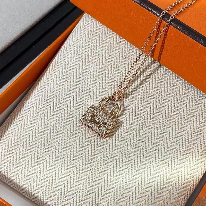 Bag with Diamond Necklace Women's Plated 18k Gold Premium Gypsy H Letter Kangkang Bag Clavicle Chain