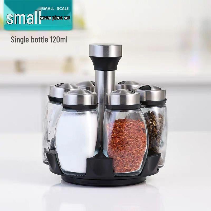 Rotating Glass Spice Jar Set - Creative Kitchen Seasoning and Condiment Organizer