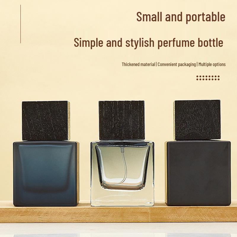 Square Frosted Thick Bottom Glass Perfume Bottle with Bayonet Press Dispenser, Portable Sample Size for Men's Fragrance.
