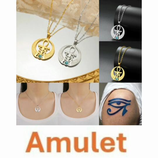 Ancient Egyptian Symbol Horus Eye Pharaoh Protection Amulet Talisman Pendant Necklace Blue Rhinestone Men Women Stainless Steel Chains Jewelry Gifts
