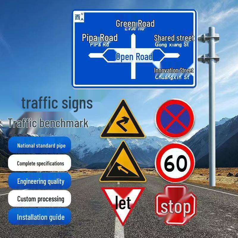 Single Cantilever L-shaped Octagonal Traffic Sign Pole with Guide Sign