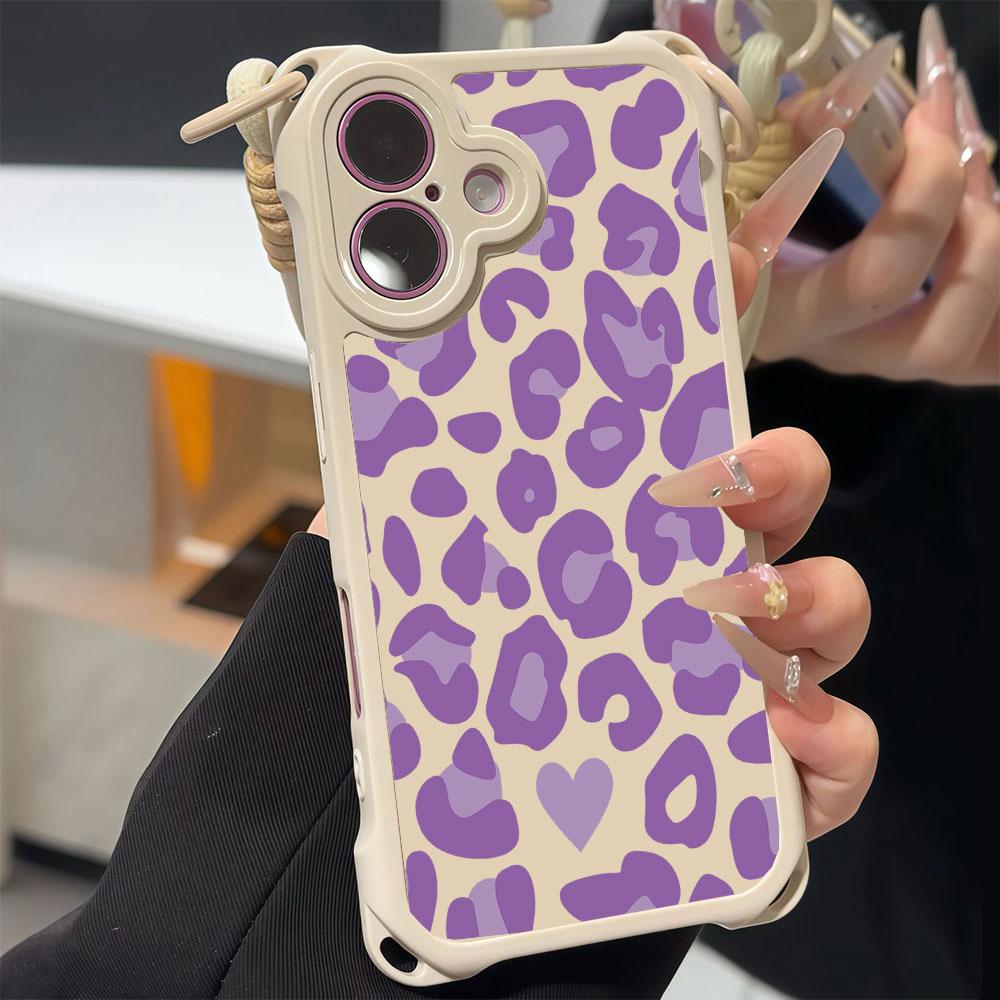 Retro Colorful Purple Leopard Women For Iphone 17 16 15 14 12 Phone Case Four Corner Anti Fall Protection Portable Hanging Rope