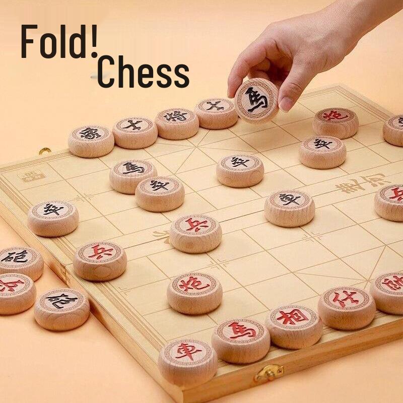 Large Chinese Chess Set - Solid Wood Board & Pieces, Portable, Ideal for Primary School Students & Children, Free Shipping Available