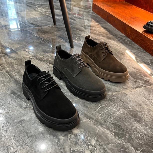 2025 Men's Black British Style Suede Leather Shoes - Height Boosting, Casual Work, Autumn/Winter Collection