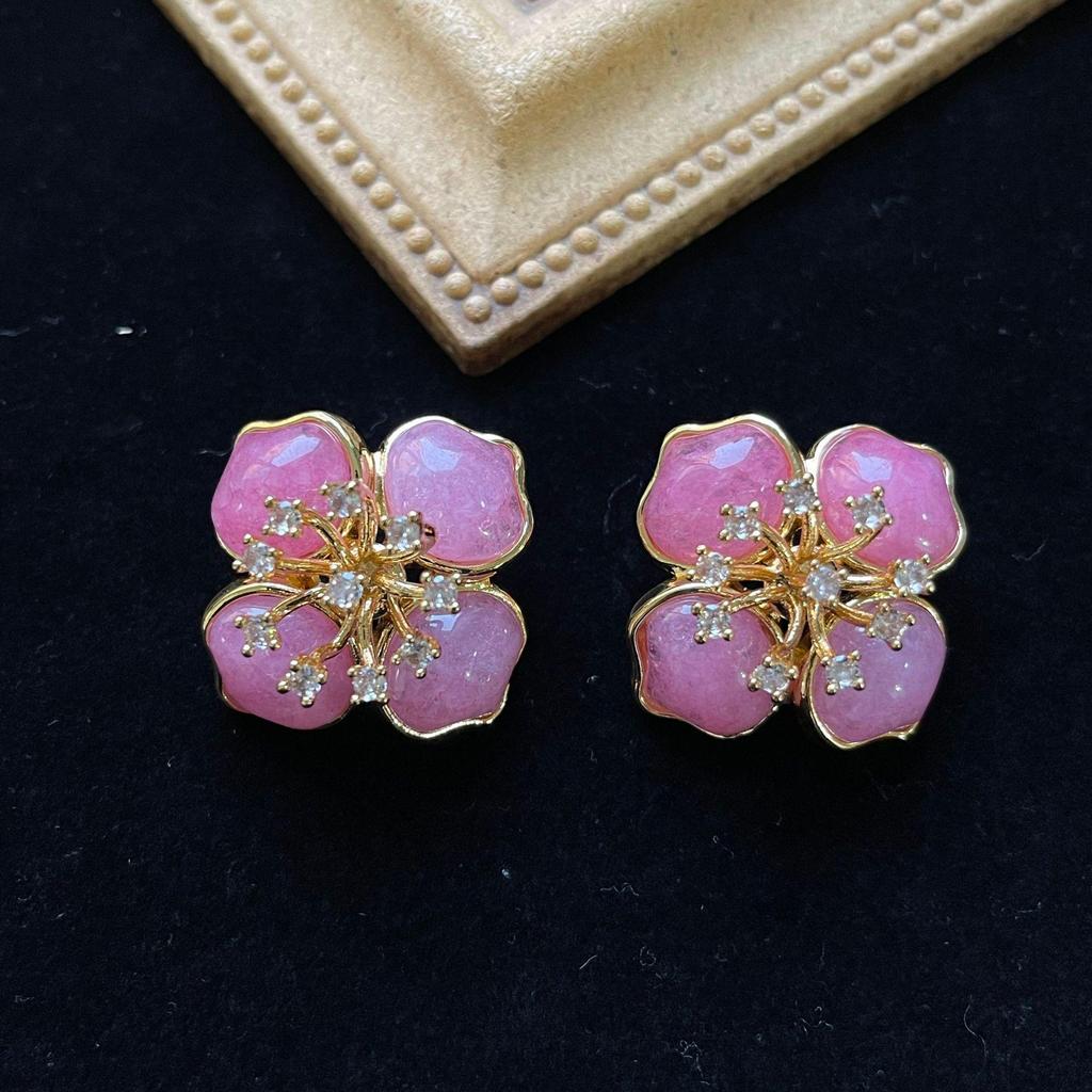 ModelPink Natural Stone Flower Studs 2.7cm 925 Silver Needle