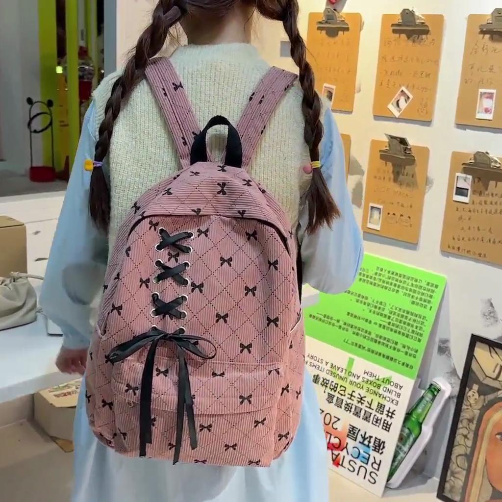Bow Check Bag Women's Backpack Corduroy Backpack