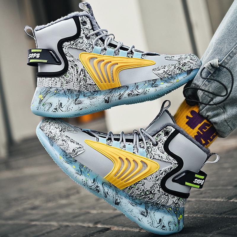 Popular Leather Surface Velvet Waterproof and Warm High-top Versatile Trendy Casual Shoes Men's Non-slip and Wear-resistant Sports Shoes