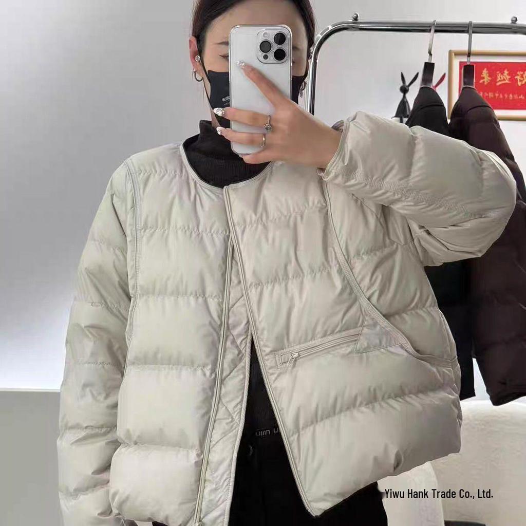 2025 Women's Korean Style Lightweight Short Down Jacket - Trendy Round Neck Petite Fashion