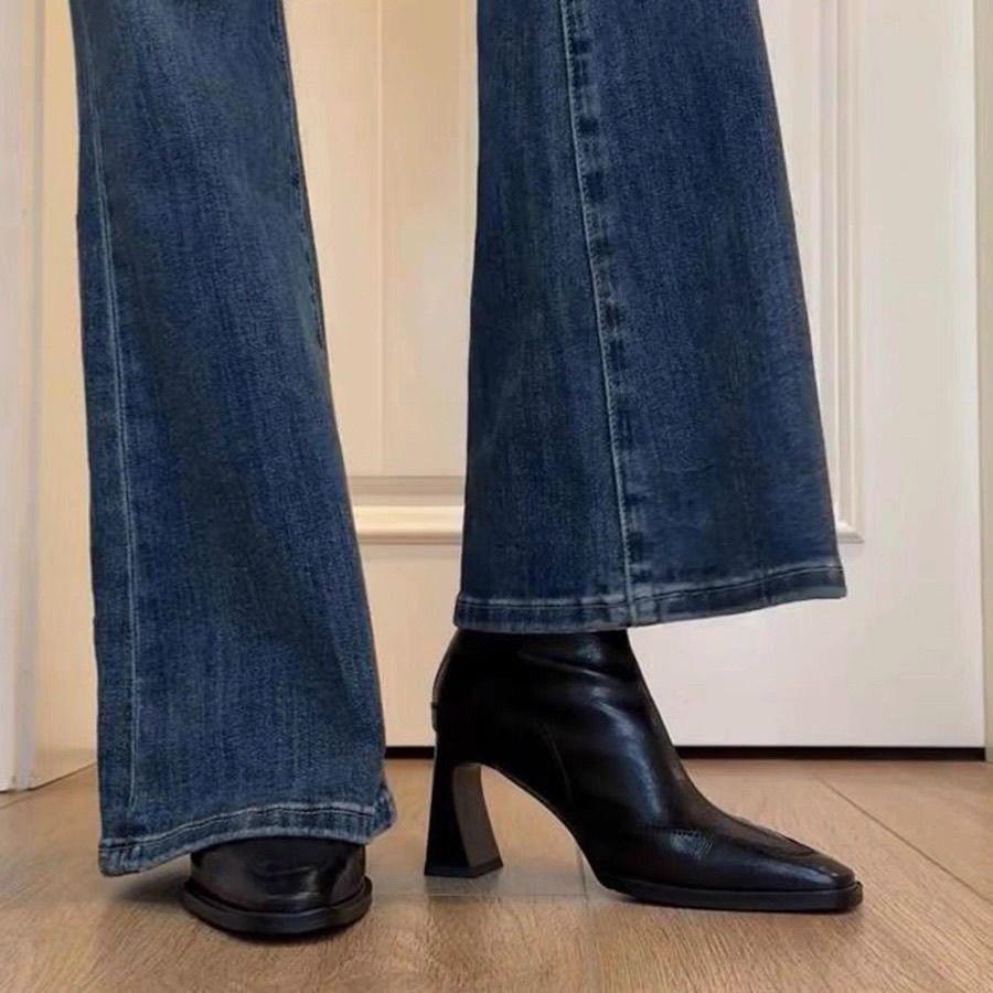 French Retro Square Toe Chunky Heel Ankle Boots for Women - Autumn Winter Versatile Slim Fit In Brown Black.