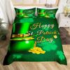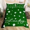 St. Patrick's Day Duvet Cover Queen Cartoon Green Clover Leaves Quilt Cover Holiday Spring Lucky Theme Bedding Set for Dorm Room