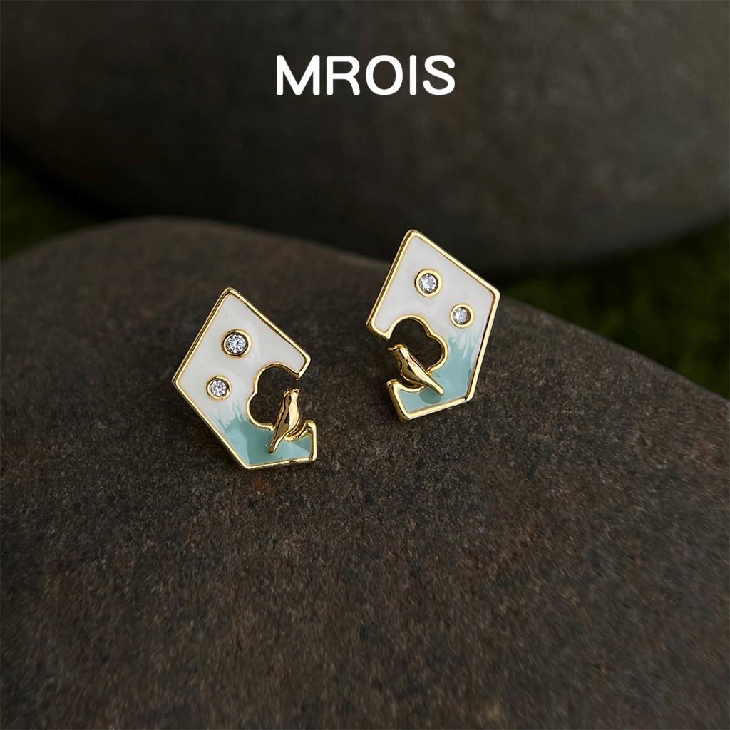 The Bird Collection: Gradient Enamel Zircon Geometric Stud Earrings - Light Luxury Literary Fashion Style